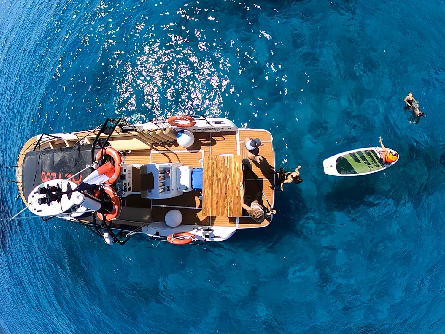 Venez vous perdre dans les nuances de bleus, seuls au monde! Destination en fonction de la météo. Joies de la croisière et mouillages sauvages. Plateforme nautique et Paddles à disposition…