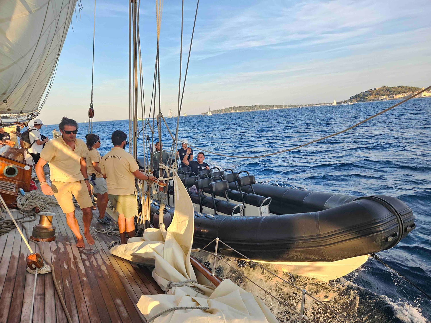 Embarquez pour suivre le spectacle unique des voiles de St-Tropez. Nos bateaux permettent de suivre la régate au plus près. Déjeuner inclus dans une crique.