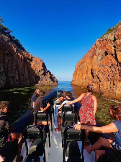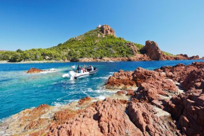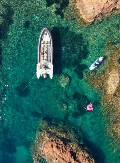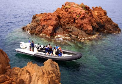 Notre très faible profondeur immergée nous permet toutes les fantaisies et les approches les plus serrées dans les calanques de l’Esterel et ses grottes, à toucher les cailloux de chaque coté du bateau.
